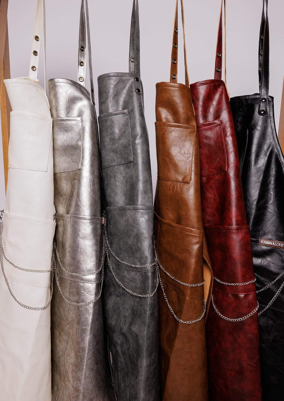 The Punk Luxury Collection will help you embrace your inner punk rocker while making a statement of authenticity in a big way. For the artist whose style is a little more rebellious, these aprons have serious attitude! Aprons help you keep your clothes clean and tidy, and let you work more confidently in style. Heavy-duty vegan leather aprons with rockin' chain detail and slit up the thigh for added flair.